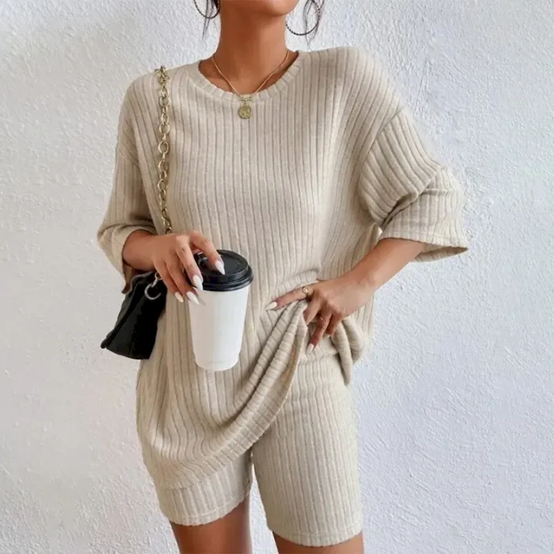 Set Women’s Red Green Beige Plain 2 Piece Street Daily Fashion Round Neck Regular Fit S 2025