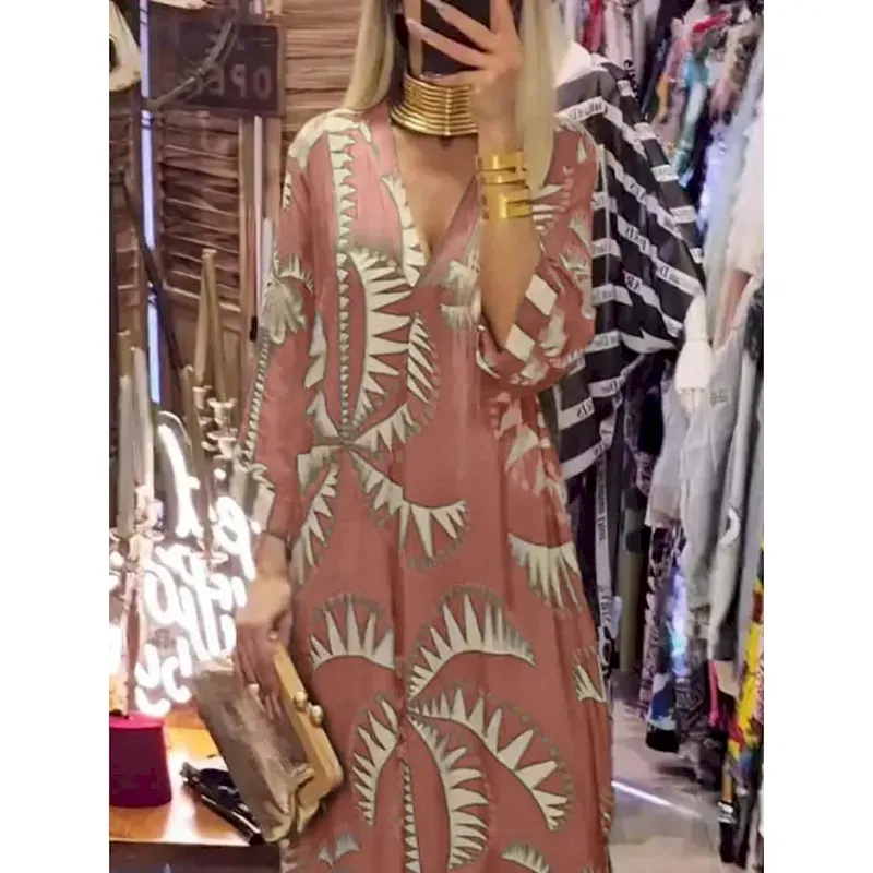 Women’s Midi Dress Casual Dress A Line Dress Boho Dress Stylish Casual Vacation Daily Regular Fit Graphic 3/4 Length Sleeve V Neck Pink Khaki Army Gre