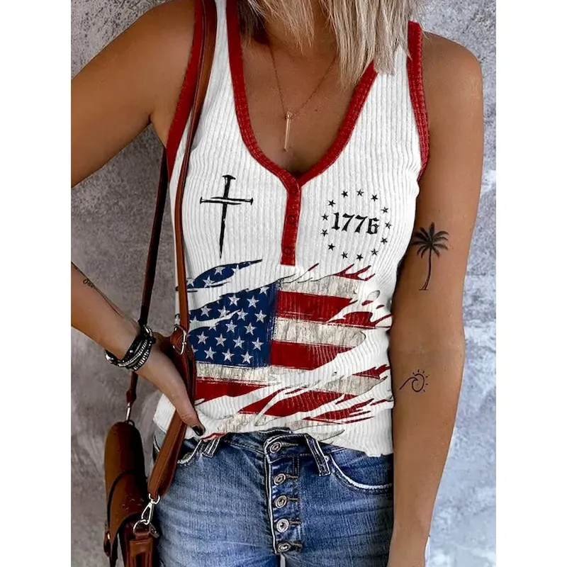 Women’s Patriotic Camisole Tank Top Graphic Flag Vintage Stylish Casual Sleeveless V Neck Regular Tops Daily Print Black White Summer Spring 2025 – U