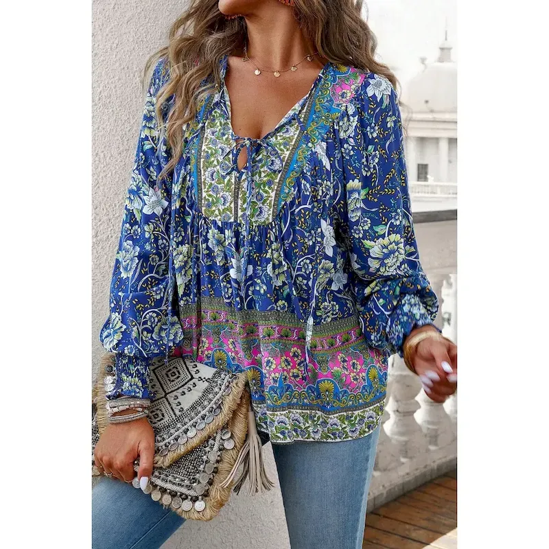 Women’s Shirt Blouse Flower Daily Stylish Casual Long Sleeve V Neck Regular Tops Daily Holiday Print Pink Navy Blue Blue Apricot Spring 2025