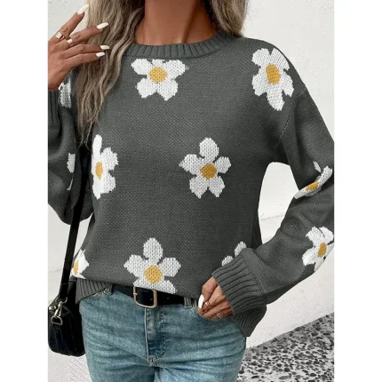 Women’s Sweater Casual Soft Graphic Color Block Ribbed Crew Neck Knitted Print Long Sleeve Regular Tops Knit Outdoor Daily Weekend Red Royal Blue Fall