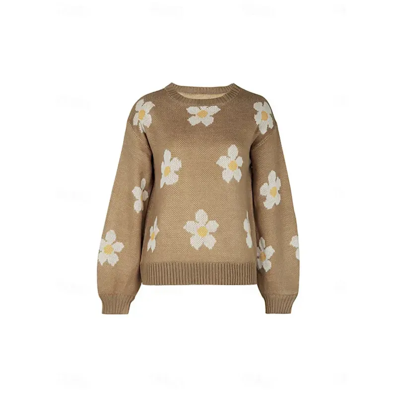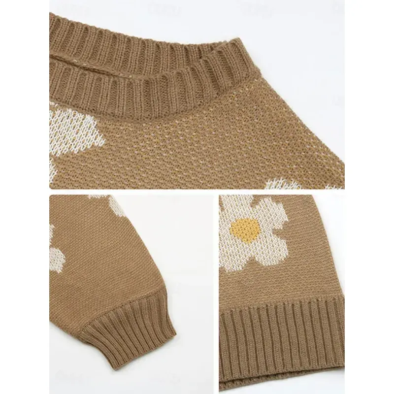 Women’s Sweater Pullover Sweater Jumper Casual Soft Floral Ribbed Crew Neck Pocket Knitted Long Sleeve Regular Tops Knit Outdoor Daily Weekend Blue Gr