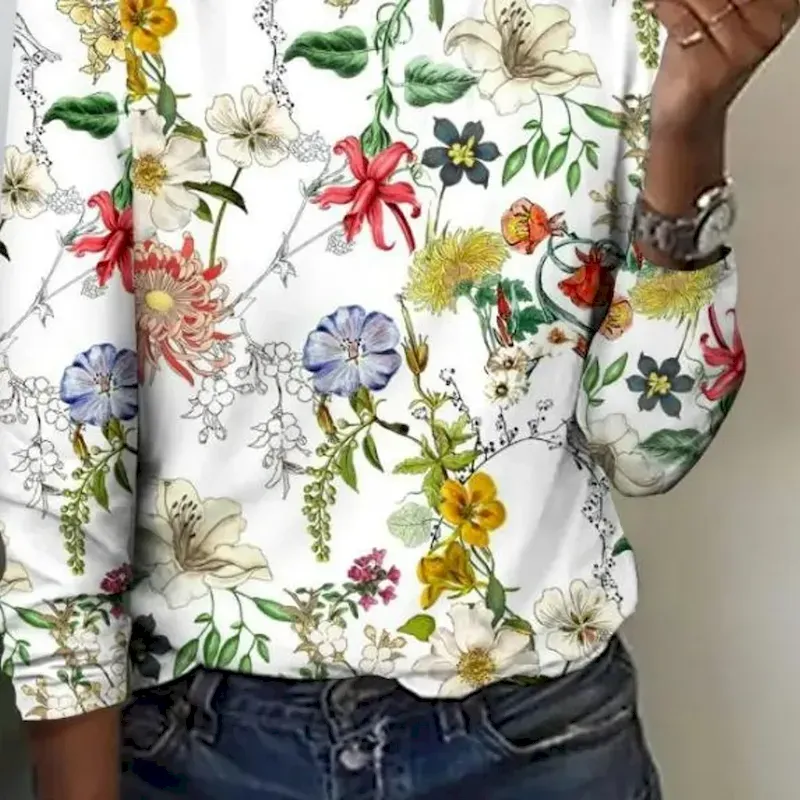 Women’s T shirt Crew Neck Long Sleeve Tunic Floral Casual Regular Tops Daily Print Pearl Spring Fall 2025