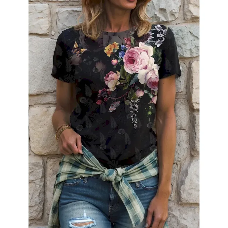 Women’s T Shirt Floral Graphic Vintage Stylish Classic Short Sleeve Crew Neck Round Neck Regular Tops Daily Print Pink Blue Purple Green Summer Spring