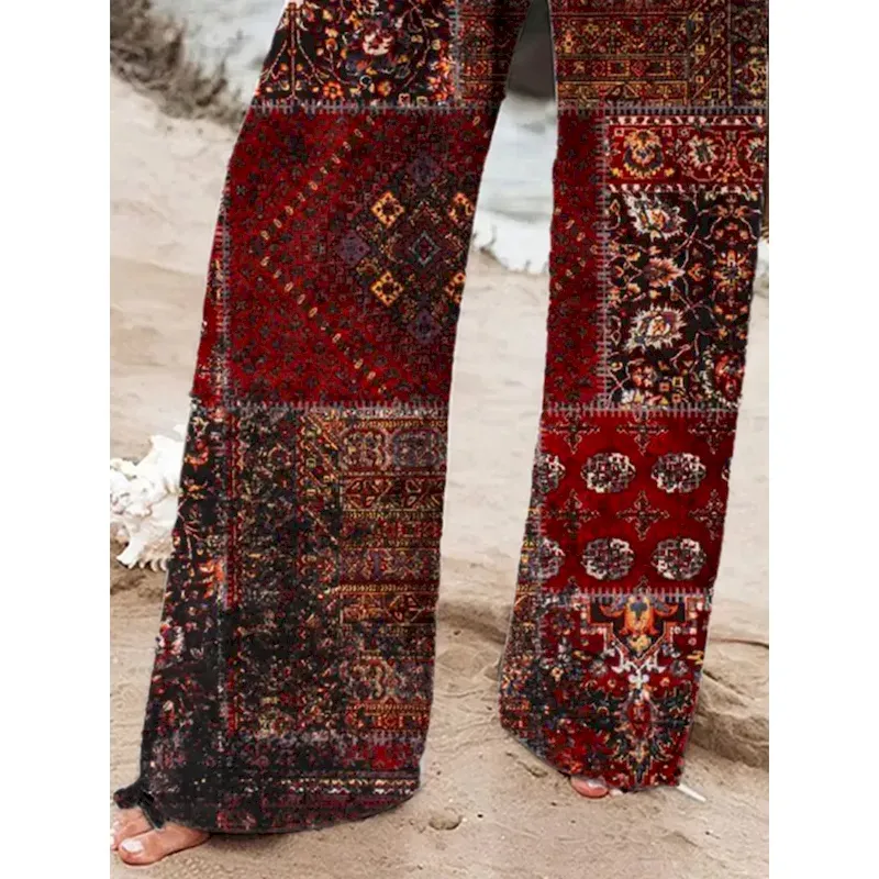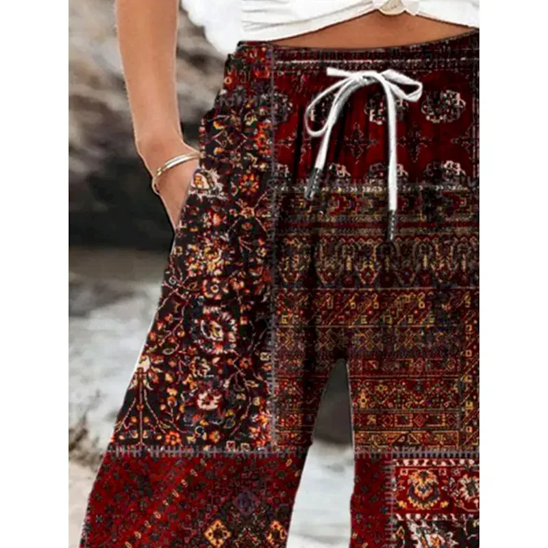 Women’s Wide Leg Chinos Baggy Pants Vacation Vintage Fashion Full Length High Waist Graphic Geometric Drawstring Patchwork Printing Soft Breathable Mi